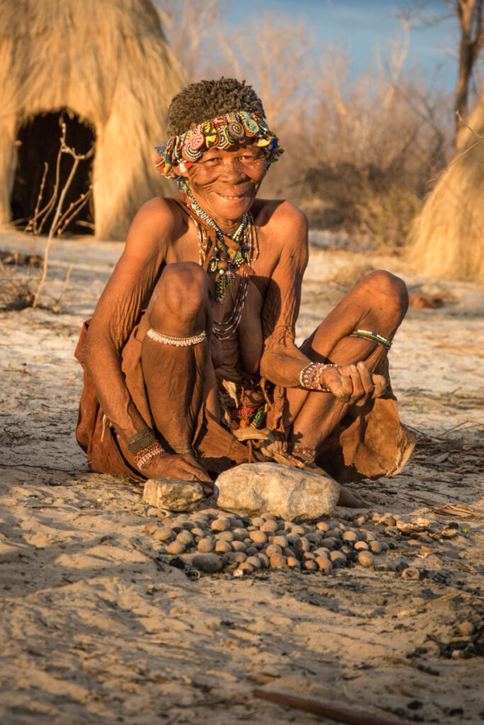 The Ju/’hoansi are representatives of one of the three main San language groups in Southern Africa. The San are extremely diverse and there are over 33 individual dialects comprising these three main San language groups. Genetically the Ju/’hoansi are amongst the purest of San lineages.